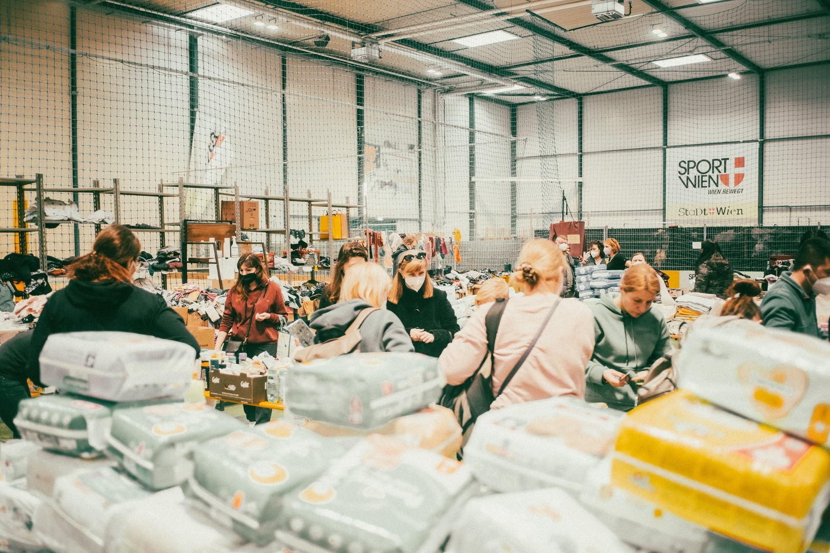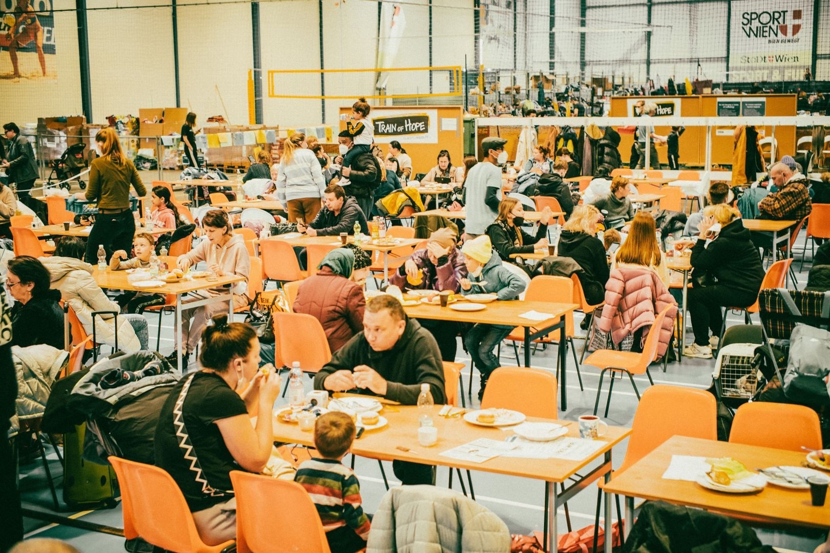 Von März 2022 bis Januar 2023 übernahm Train of Hope die Versorgung und Betreuung von über 135.000 Vertriebenen aus der Ukraine im Humanitären Ankunftszentrum in Wien.